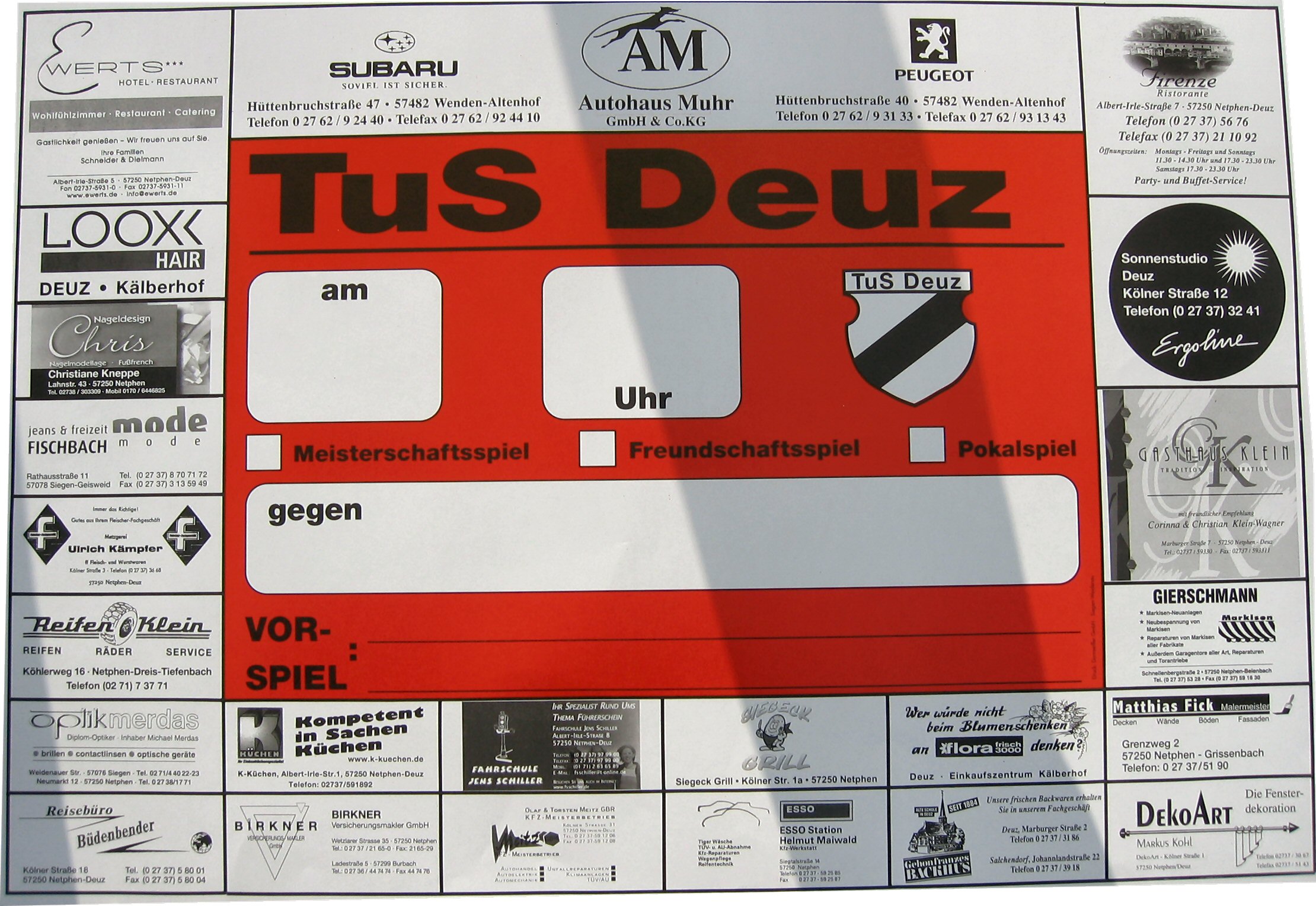 Bandenwerbe-Partner erhält als Gegenleistung von der TuS-Deuz